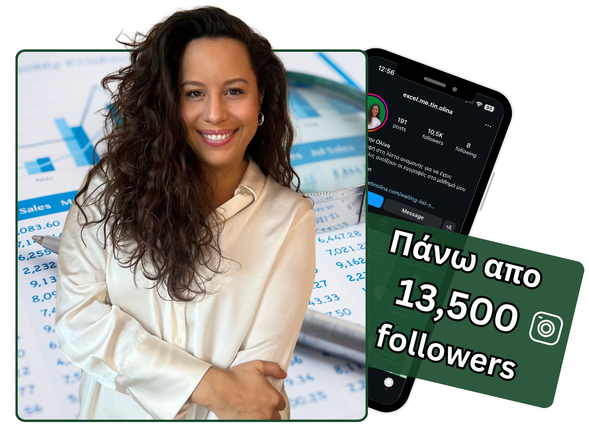Ξεκίνησα να μοιράζομαι την αγάπη μου για το Excel μέσα από σύντομα βίντεο με tips & tricks σε Instagram, TikTok και Facebook, και η ανταπόκριση ήταν καταπληκτική. Έτσι γεννήθηκε και το πλήρες ασύγχρονο μάθημά μου, φτιαγμένο για να σε καθοδηγήσει βήμα-βήμα.