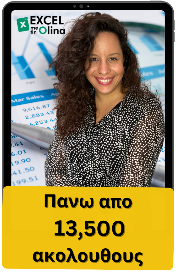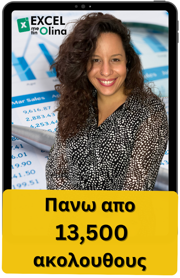 Γεια σου, είμαι η Ολίνα! Αν δεν το έχεις καταλάβει από το όνομα του μαθήματος, είμαι το άτομο πίσω από όλη αυτή την προσπάθεια να κάνουμε το Excel λίγο πιο… εύκολο και διασκεδαστικό! 🎉